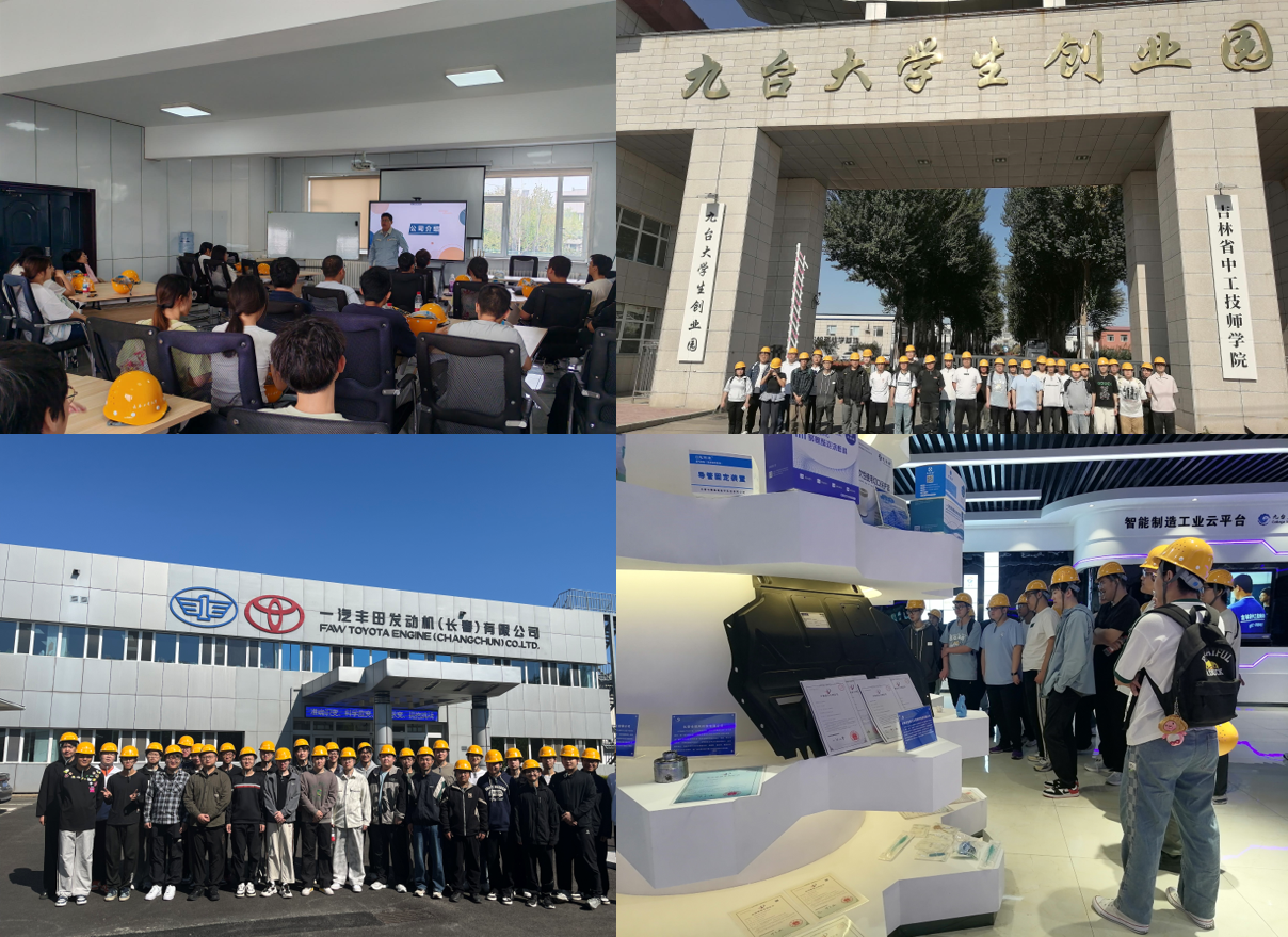 第2-3周,员工分组入驻五大实习基地,开启“沉浸式”企业实践。员工分别前往九台大员工创业园、长春泰盟机械制造股份有限公司、一汽丰田发动机、长春派格汽车塑料技术有限公司、长春汽车职业技术大学进行参观学习。