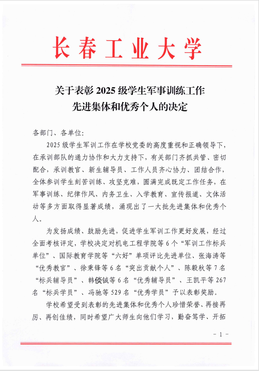 本网讯(通讯员 姜鸿乔)近日,永利3044noc公布了《关于表彰2025级员工军事训练工作先进集体和优秀个人的决定》,公司获军训工作标兵单位,“六好”单项评比先进单位、标兵辅导员、标兵学员、优秀学员等多项荣誉。